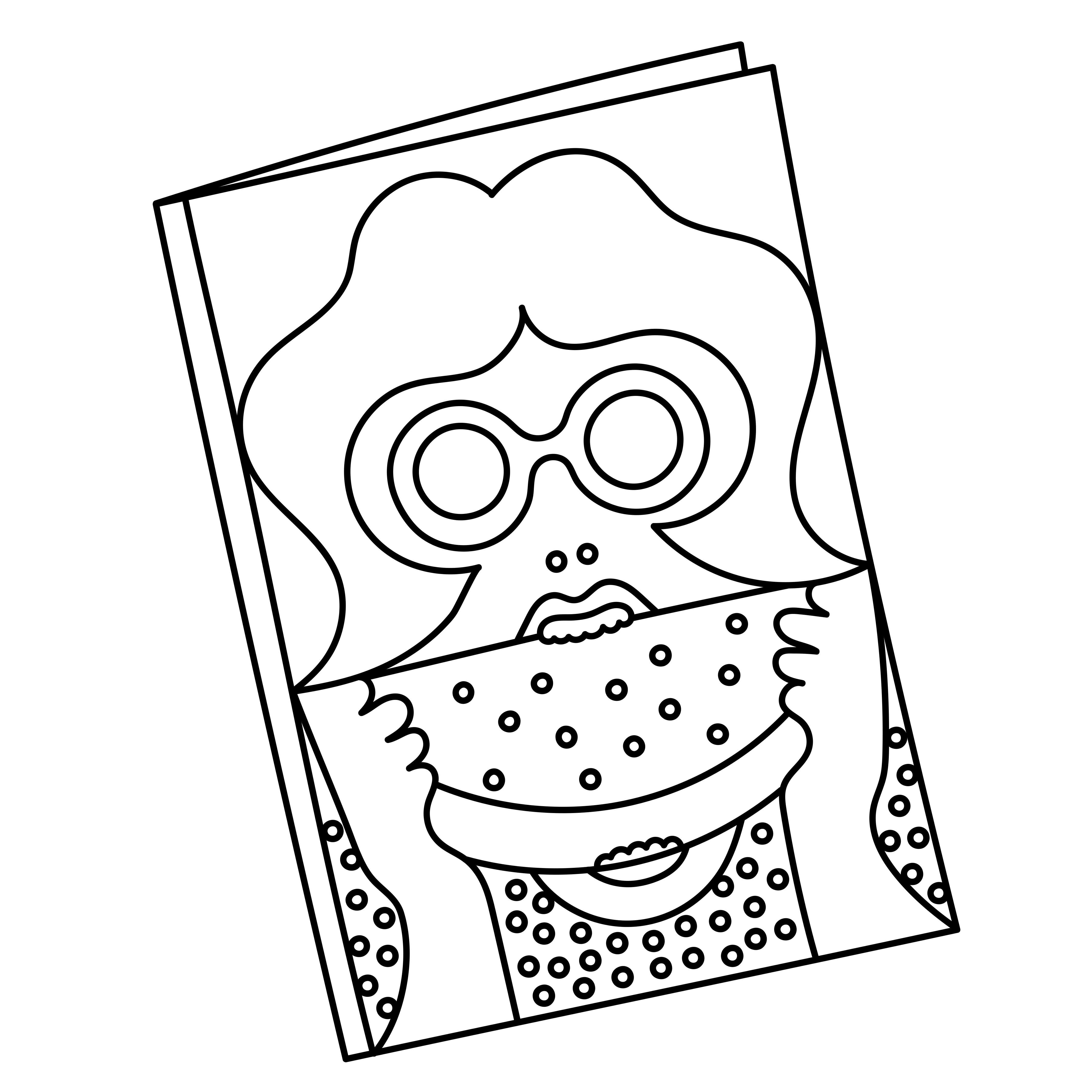 Now it all comes together. The watermelon slice is in the center of the page, occupying all its horizontal space. Its red, green, and black are the main colors. The pink of her complexion and the white of her teeth and reflections constitute the only departures from the rule. The character is a kind of contemporary Betty Boop seeking respite from the summer heat. At 2:43 p.m. I save the file “NewYorkerCover_Watermelon_Def” and send it to Françoise Mouly.